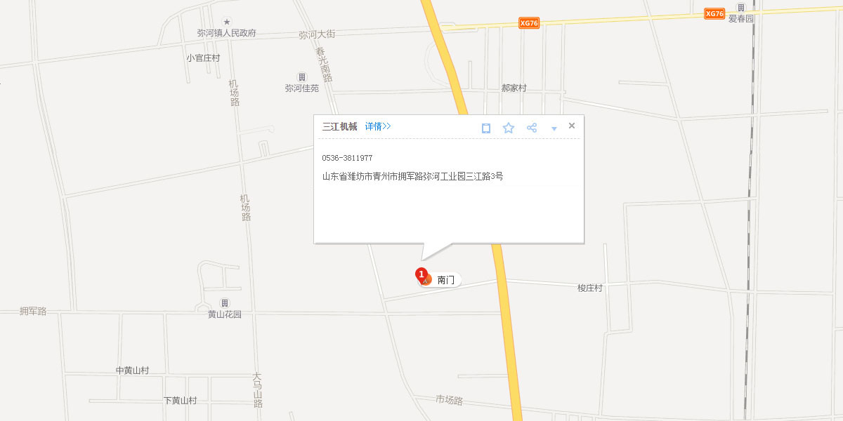 青州市三江機(jī)械有限公司坐落于中國北部的花木之鄉(xiāng)——山東省青州市,風(fēng)景優(yōu)美,交通便利,人杰地靈。
